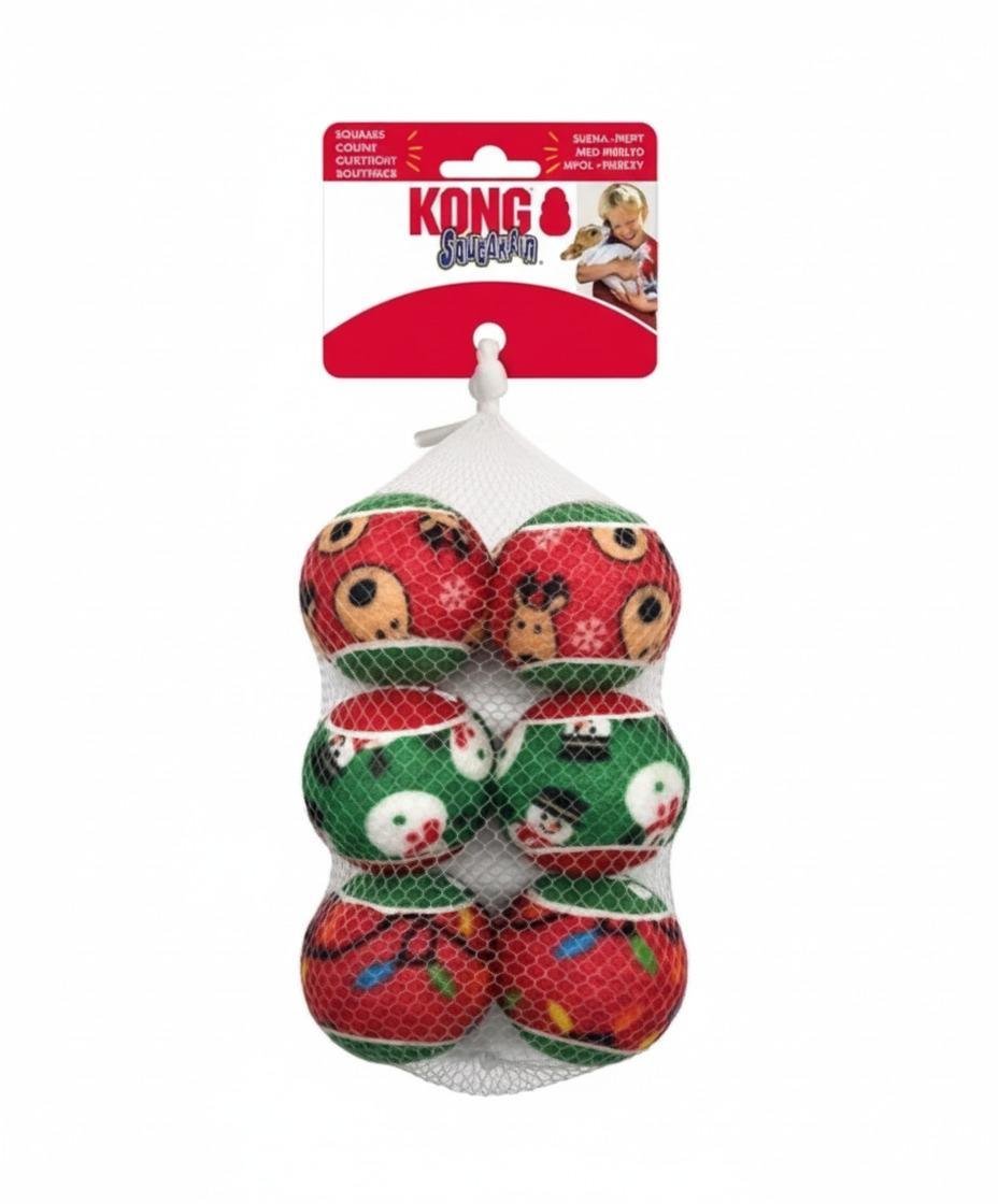 KONG Holiday SqueakAir Balls – Tamanho P (6 unidades)