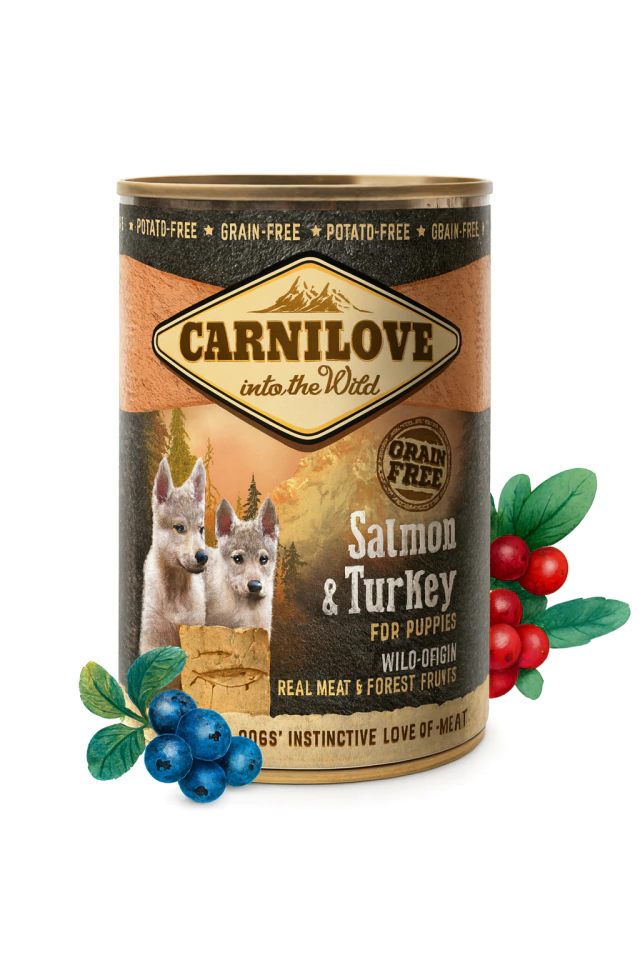 Patê Alimento úmido em lata Salmão e Peru para Filhotes- 400g- Carnilove