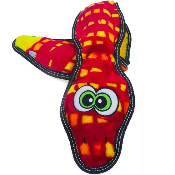 Seu corpo achatado e os apitos encapados tornam o brinquedo perfeito para lutas intermináveis e brincadeiras de cabo de guerra.