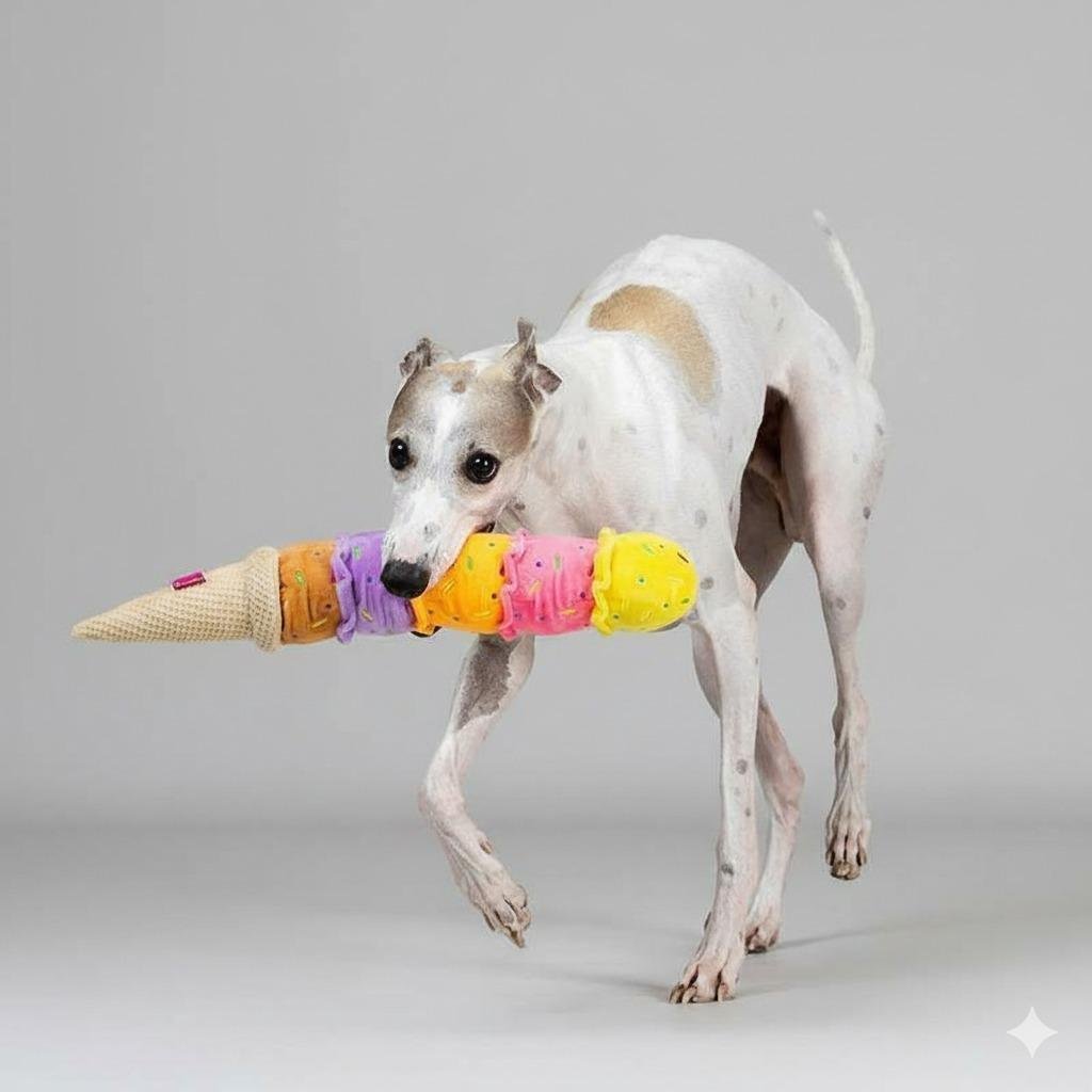A Pelúcia Interativa Sorvete com Cascão Colorido é ideal para cães que adoram brinquedos macios, mas com estímulos extras.