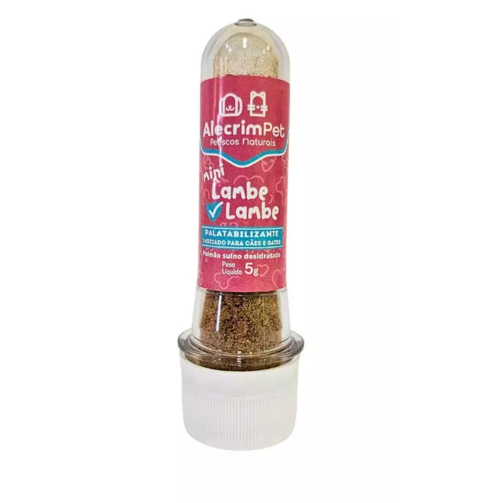 O Mini Lambe-Lambe Suíno é um palatabilizante 100% natural, feito com pulmão suíno desidratado em pó, que transforma a rotina alimentar dos pets. Com aroma marcante e sabor irresistível, é ideal para deixar a ração ou alimentação natural muito mais atrativa, incentivando até os mais exigentes a comerem melhor.