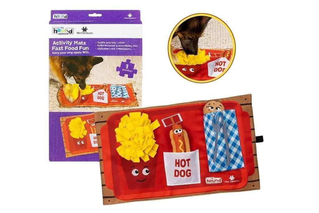 O Tapete de Fuçar Fast Food Fun da Nina Ottosson é a escolha ideal para manter seu cão entretenido, ativo e mentalmente estimulado. Com design interativo que simula um ambiente de fast food, o tapete oferece uma experiência divertida e desafiadora: os cães podem fuçar, explorar e procurar petiscos escondidos, estimulando o instinto natural de caça e enriquecendo a rotina.